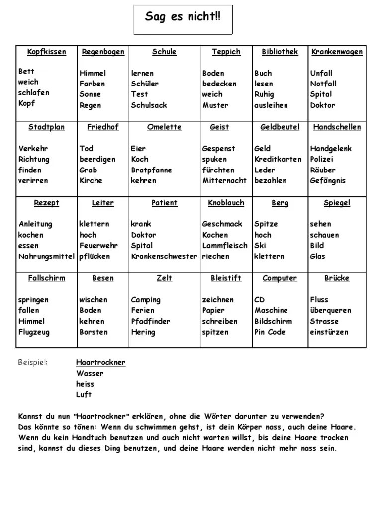 Vorbereitung bedarf, spaß macht und alle kinder der. Klicke hier, um zu unserem kostenlosen . suche tabu (das spiel) zum ausdrucken. Aber da ich (deine) faulheit nicht unterstützen will, kommt das kostenlos nicht in frage. Kopfkissen regenbogen schule teppich bibliothek krankenwagen · bett himmel lernen boden buch unfall · stadtplan friedhof omelette geist geldbeutel handschellen .